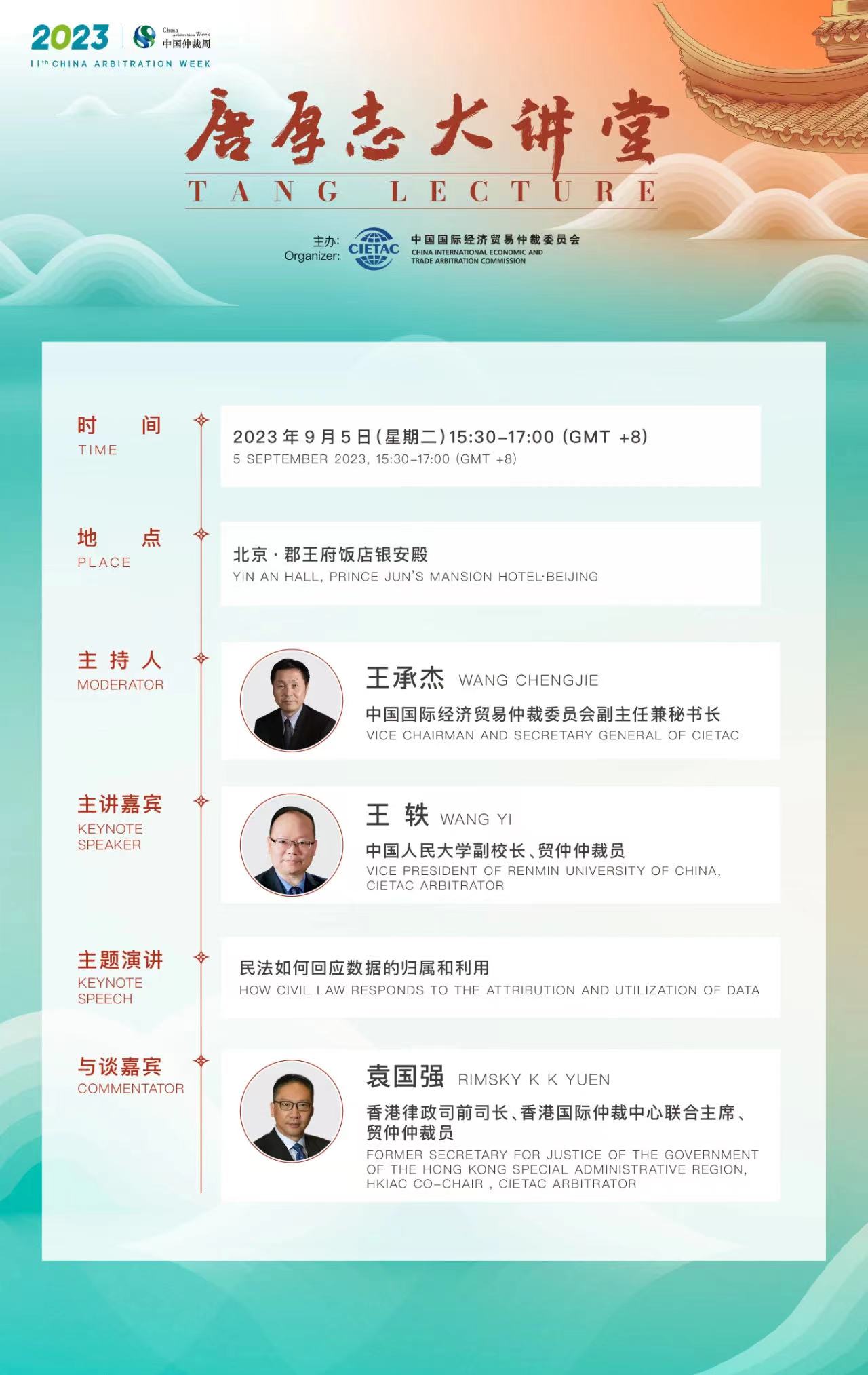 中國國際經(jīng)濟(jì)貿(mào)易仲裁委員會(huì)(CIETAC)主辦的第七屆“唐厚志大講堂(TANG Lecture)”將于2023年9月5日下午在北京舉行。