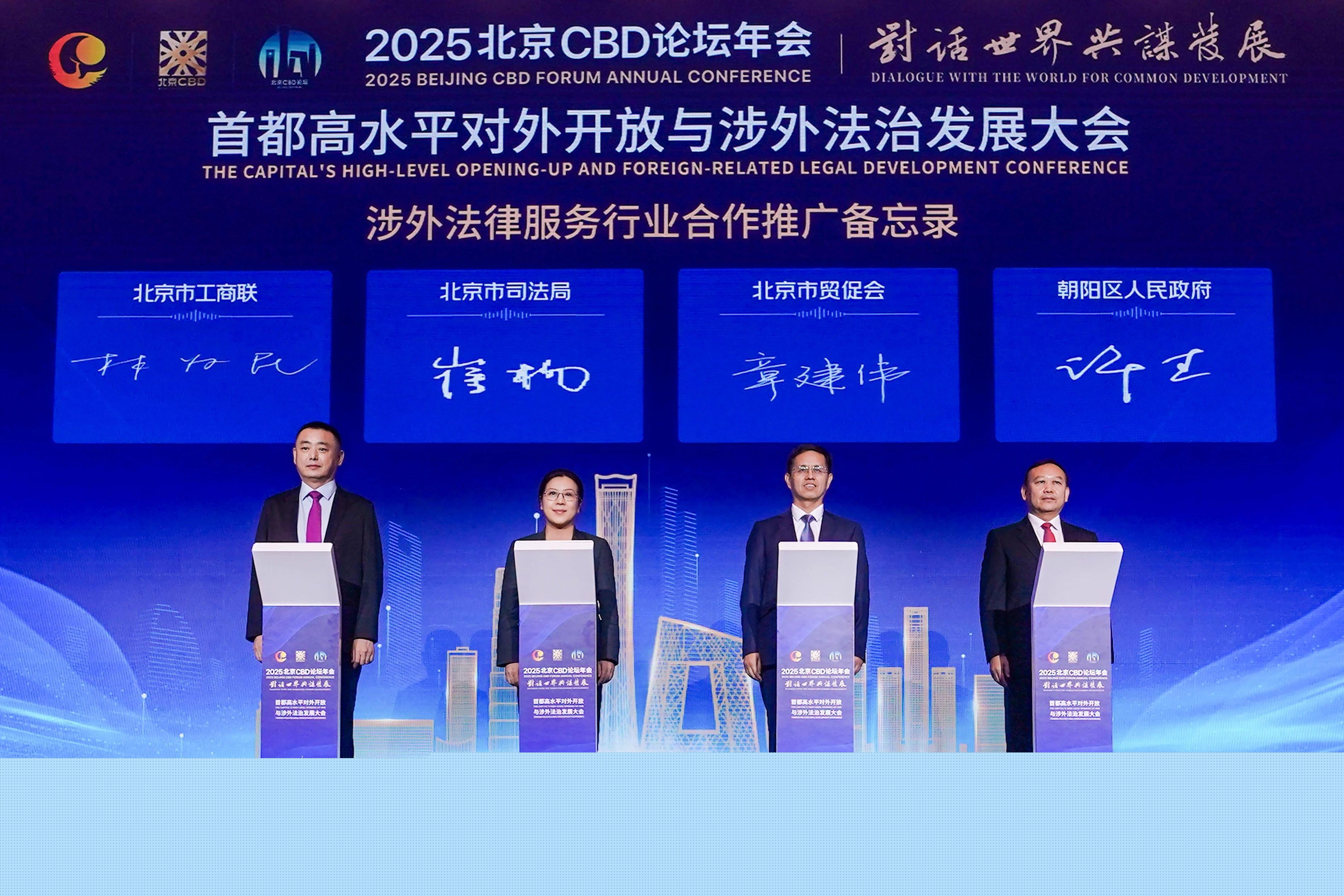 北京市司法局、朝陽區(qū)人民政府、北京市貿(mào)促會、北京市工商聯(lián)圍繞涉外法律服務(wù)機(jī)構(gòu)推介和政策保障事項(xiàng)共同簽署《涉外法律服務(wù)行業(yè)合作推廣備忘錄》。