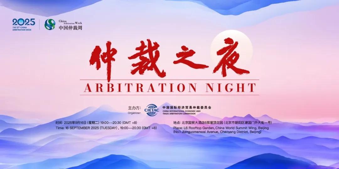 The 2025 Arbitration Night held by China International Economic and Trade Arbitration Commission (CIETAC) will take place at the L6 Rooftop Garden, China World Summit Wing, Beijing (No.1 Jianguomenwai Avenue, Beijing) at 19:00 on 16th September 2025.