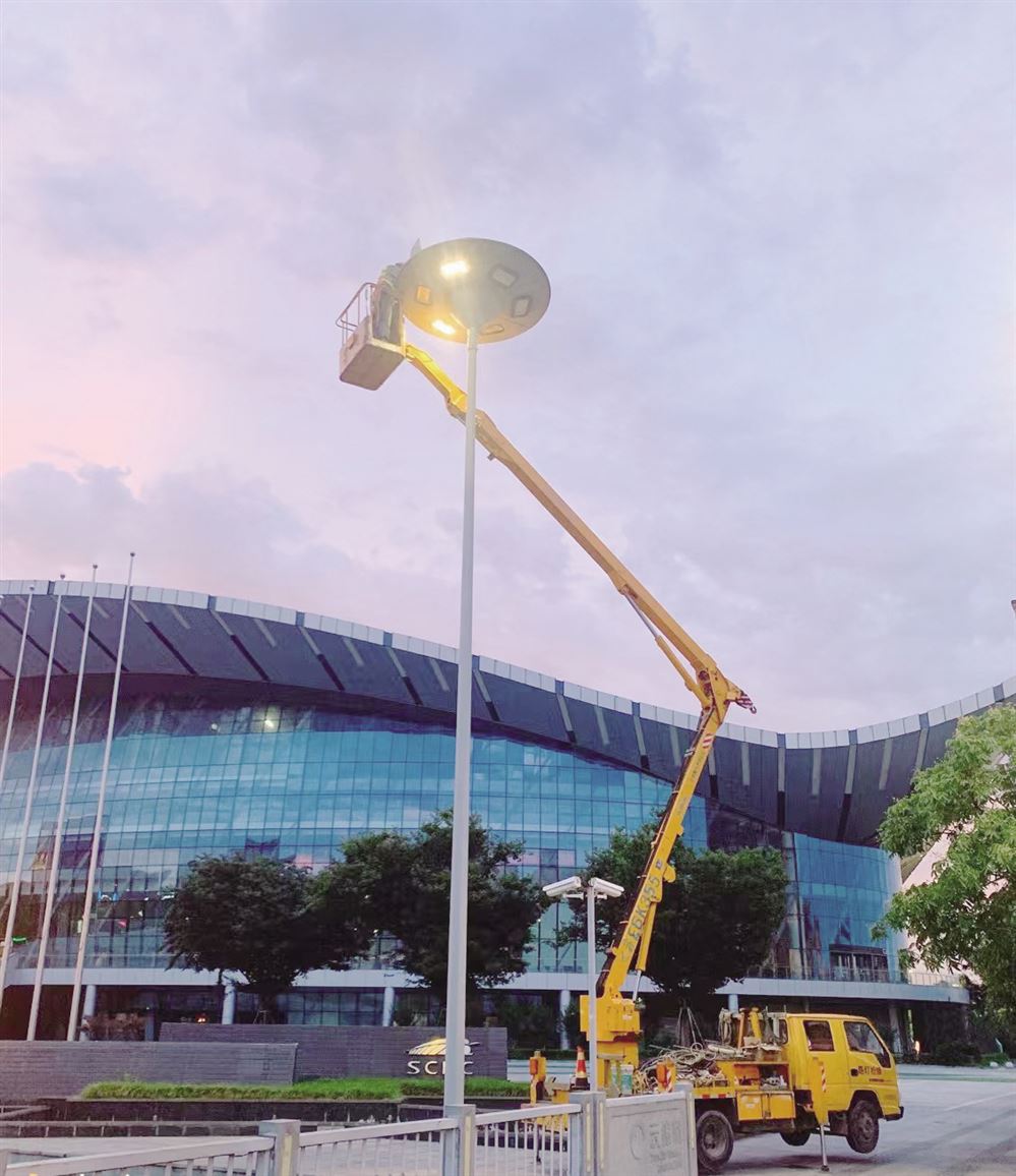 路燈修復(fù)現(xiàn)場(chǎng)。(陳靜攝)