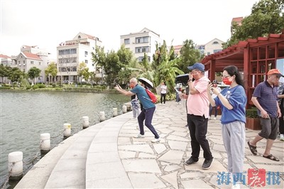 微風(fēng)拂過(guò),雙清橋下的一池碧水蕩起陣陣漣漪;一幢幢紅磚古厝掩映在綠樹(shù)叢中,村道整潔,鳥(niǎo)語(yǔ)花香?;顒?dòng)第三站,體驗(yàn)團(tuán)來(lái)到了翔安區(qū)澳頭社區(qū)。