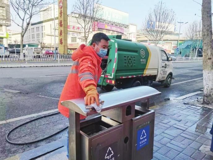 精細清洗,確保衛(wèi)生無死角。在只楚路,一抹橙色的身影蹲在垃圾箱旁,手里拿著抹布仔仔細細擦拭著垃圾箱。當記者走近時,保潔員孟凡榮指著垃圾箱的表面開心地告訴記者:“看,像家里的鏡子一樣,都能照出人影了。看著干干凈凈的垃圾箱,我這心里也很美?!睘楸WC大掃除全覆蓋,芝罘區(qū)環(huán)衛(wèi)中心督導兩家服務企業(yè)組織保潔員開展精細化擦拭,同時加大對垃圾點位周邊的沖洗力度,清除衛(wèi)生死角,確保垃圾箱及周邊干凈整潔。