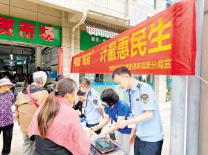 結(jié)合專項(xiàng)整治,在集貿(mào)市場、商超、趕集日、地鐵站出口等人流密集場所舉辦“手機(jī)變砝碼”系列活動,工作人員使用檢定合格的電子秤對群眾隨身攜帶的手機(jī)進(jìn)行稱重,加貼統(tǒng)一制式的重量標(biāo)簽,讓群眾手機(jī)秒變計(jì)量“砝碼”,并同步演示具體操作流程,為消費(fèi)者復(fù)稱商品重量,講述手機(jī)“變身”后在稱重時(shí)的使用方法;多渠道向廣大消費(fèi)者宣傳識別“鬼秤”的基本方法,普及電子計(jì)價(jià)秤計(jì)量知識,讓廣大消費(fèi)者掌握電子計(jì)價(jià)秤等日常計(jì)量器具的度量、單位換算知識,避免因知識盲點(diǎn)被商家誤導(dǎo)欺騙,活動中共“賦碼”手機(jī)560余部,接受群眾咨詢620余人次。