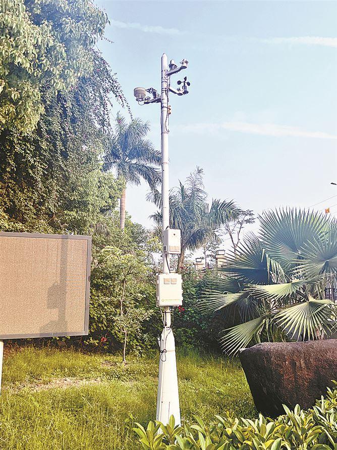 中國(guó)科學(xué)院城市環(huán)境研究所門口的智能聲景采集設(shè)備。
