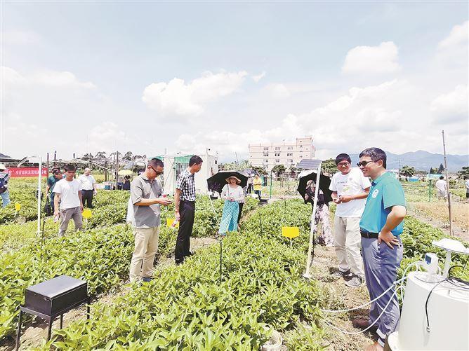 研究人員在田間做廚余垃圾資源回收還田利用相關(guān)實(shí)驗(yàn)。
