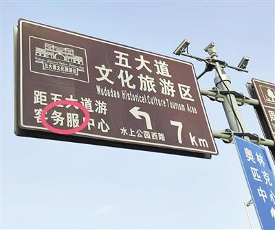 在河北區(qū)金鐘河大街與外環(huán)東路交口,一塊紅底白字的“天津黃崖關(guān)長(zhǎng)城風(fēng)景游覽區(qū)”景點(diǎn)指示牌表面已經(jīng)開(kāi)裂、污損嚴(yán)重,難以辨別內(nèi)容;在東麗區(qū)金鐘公路大畢莊段,一塊標(biāo)注著“東麗湖度假區(qū)”字樣的指示牌,文字上方的信息大面積脫落,成了“大白臉”,無(wú)法辨認(rèn)具體內(nèi)容;在南開(kāi)區(qū)賓水西道由東向西方向,賓悅橋橋口,一塊“五大道游客服務(wù)中心”指示牌上的“服務(wù)”二字錯(cuò)寫(xiě)成“務(wù)服”。這些指示牌均位于車(chē)流量較大的主干道上,原本是為游客指引方向,如今不僅識(shí)別度低,還有損城市形象。