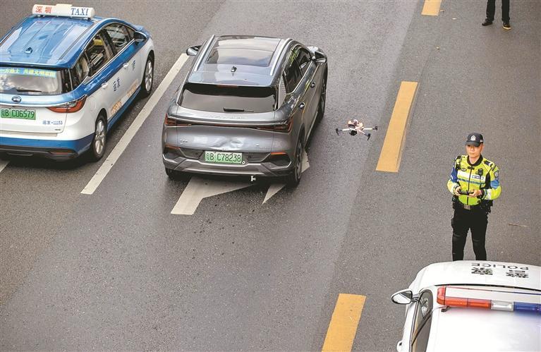 福田大隊機訓(xùn)中隊副中隊長李海峰告訴記者,無人機實時對違法行為進行抓拍取證,快速準(zhǔn)確定位。路面警力即刻響應(yīng)、快速攔截查處,大幅提升了執(zhí)法效率。即使現(xiàn)場沒有及時攔截住違法車輛,通過無人機執(zhí)法抓拍的整段視頻也可以完整展現(xiàn)違法過程,后續(xù)進行調(diào)查處理?!吧钅洗蟮缹儆诙壪扌袇^(qū),違規(guī)駛?cè)朐撀范蔚?,我們依法按沖禁令進行處罰并查扣車輛?!崩詈7逭f。