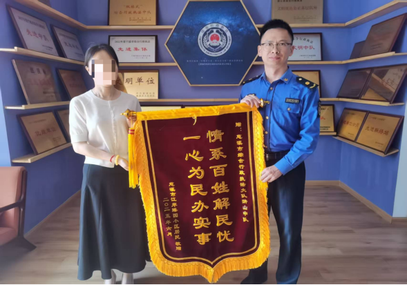 6月6日晚,浙江省慈溪市滸山街道江岸臻園小區(qū)的幾位居民代表來到滸山街道綜合行政執(zhí)法隊,將一面寫有“情系百姓解民憂 一心為民辦實(shí)事”的錦旗交到執(zhí)法人員手中?!罢娴奶兄x你們了!現(xiàn)在終于能睡個安穩(wěn)覺了。”居民戚央萍握著執(zhí)法人員的手激動地說。這面錦旗背后,是滸山街道綜合行政執(zhí)法隊通過三次溫情約談,成功化解峙山公園夜間露天唱歌擾民難題的暖心故事。
