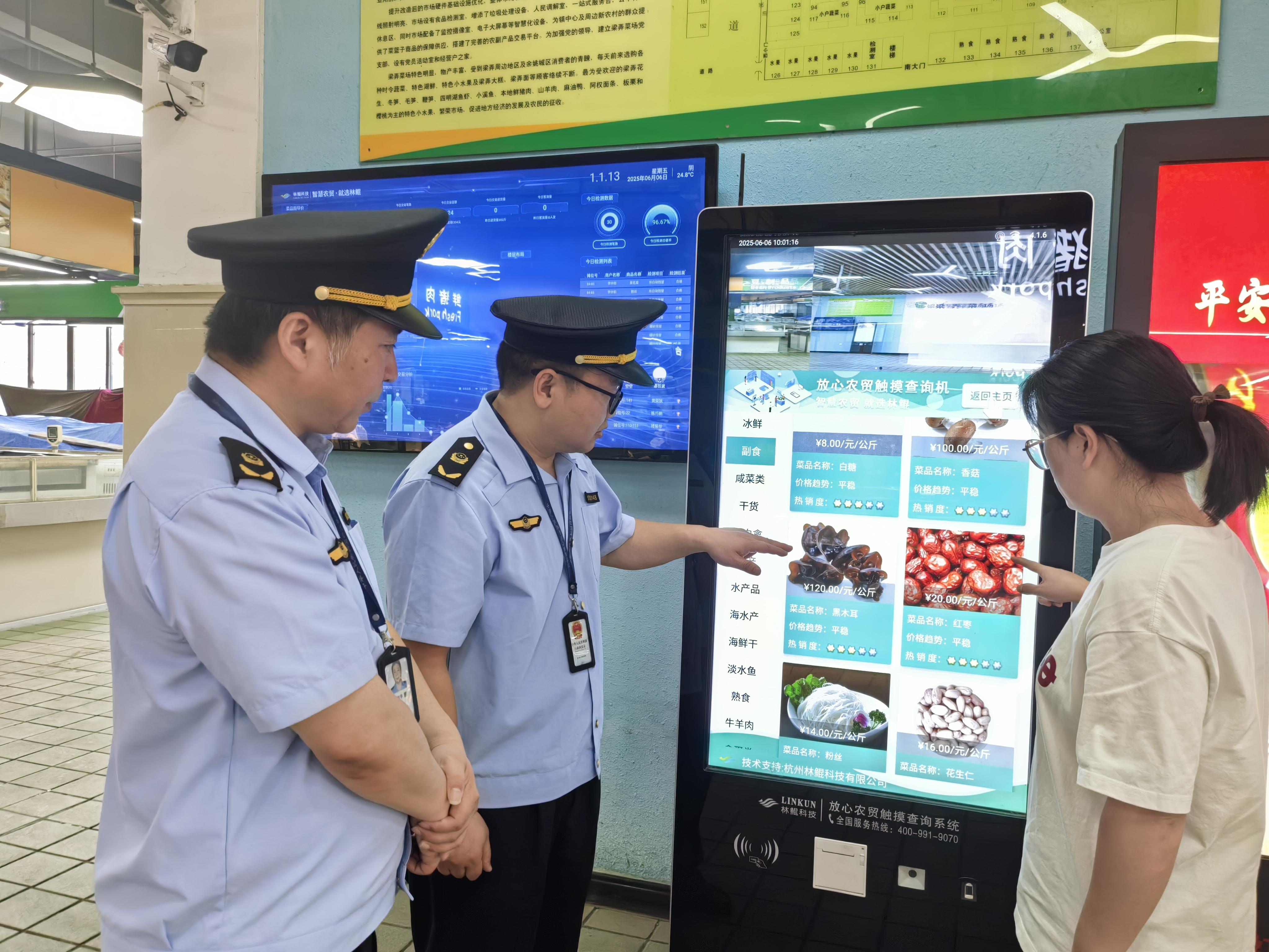 該局將數(shù)字化改革作為農(nóng)貿(mào)市場(chǎng)轉(zhuǎn)型升級(jí)的關(guān)鍵引擎,全力推動(dòng)梁弄菜場(chǎng)智慧化建設(shè)。指導(dǎo)菜場(chǎng)完成一系列標(biāo)準(zhǔn)化改造,配備 1塊終端公示屏、1塊智能查詢屏、76塊商戶信息屏等數(shù)字化設(shè)備,實(shí)現(xiàn)市場(chǎng)信息、檢測(cè)信息、價(jià)格信息等全面公開透明。引入智能監(jiān)控設(shè)備與AI技術(shù),實(shí)時(shí)監(jiān)測(cè)市場(chǎng)秩序,嚴(yán)厲打擊超攤擴(kuò)攤等違規(guī)行為,保障市場(chǎng)經(jīng)營(yíng)規(guī)范有序。