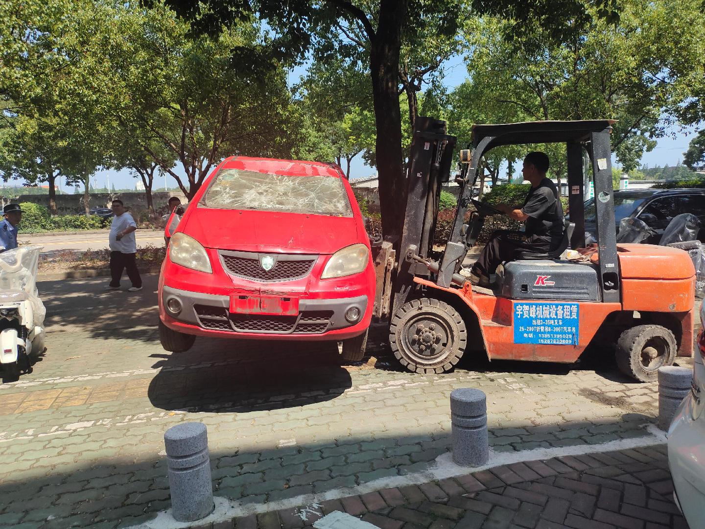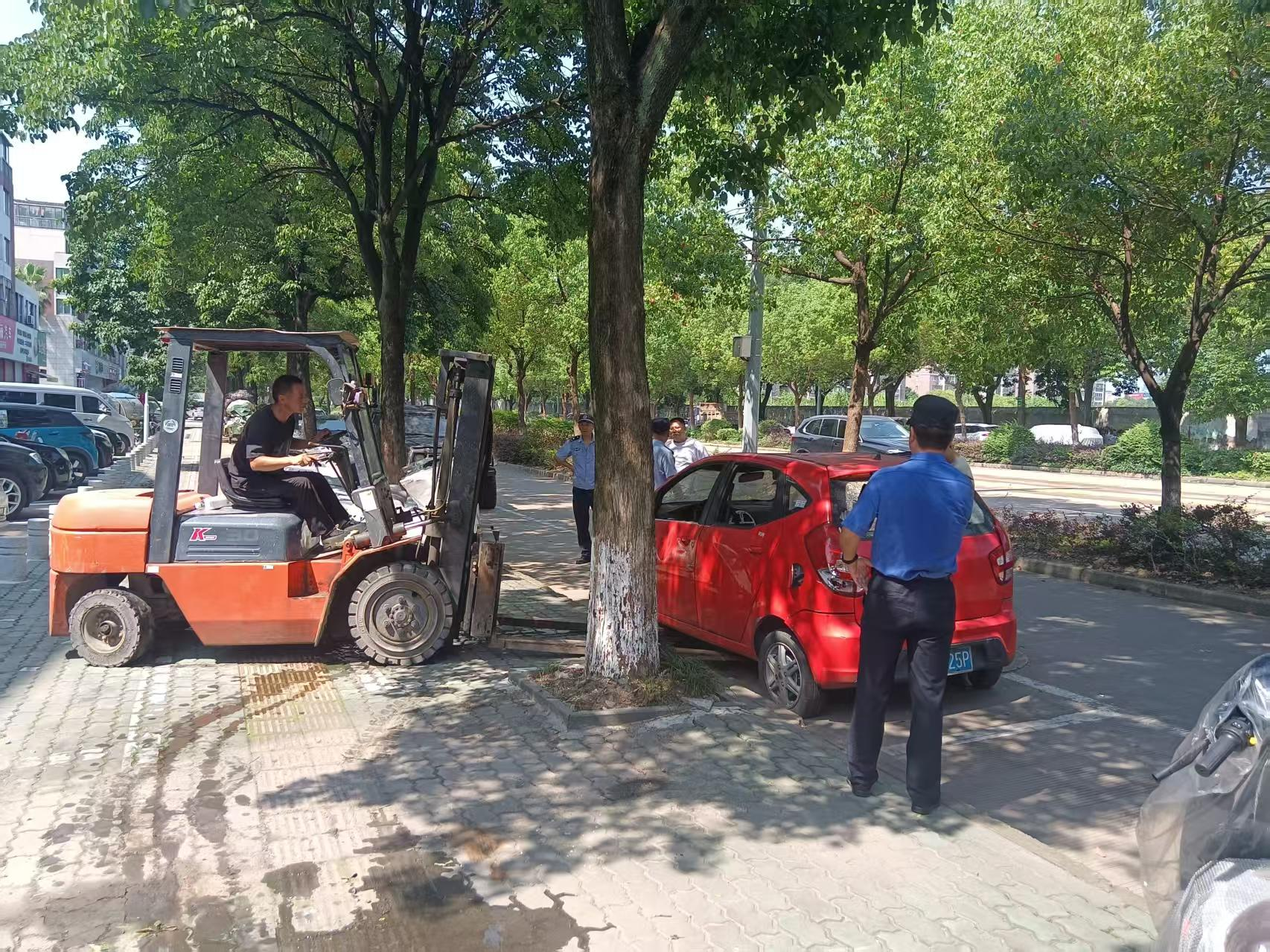 6月27日,一輛待報廢車停在浙江省寧波市北侖區(qū)新碶街道閩江路的人行道上,前有隔離樁圍堵,后有市政樹木攔路,動彈不得,陷入困境。車主胡先生束手無策之際,一通電話撥向了寧波市北侖區(qū)新碶街道綜合行政執(zhí)法隊。執(zhí)法人員并未開出罰單,反而迅速調(diào)度叉車,在車主胡先生的現(xiàn)場指引下,小心翼翼地將這輛“困”住的舊車平移數(shù)十米,穩(wěn)穩(wěn)安放于附近公共泊位,以便車主近日自行聯(lián)系單位報廢處理。望著難題迎刃而解,胡先生連連道謝,感激之情溢于言表。