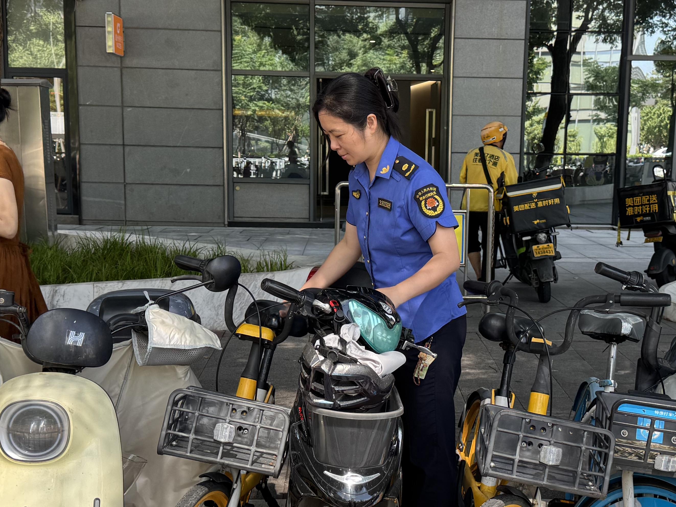 “我們大樓的人流量、人流量都很大,近期執(zhí)法人員每天在早、中、晚高峰期開(kāi)展定點(diǎn)整治,并且指導(dǎo)我們?cè)诖髽俏鱾?cè)劃設(shè)了外賣(mài)專(zhuān)屬停車(chē)位,非機(jī)動(dòng)車(chē)停車(chē)秩序得到有效改善?!钡先ご髲B物業(yè)工作人員表示。