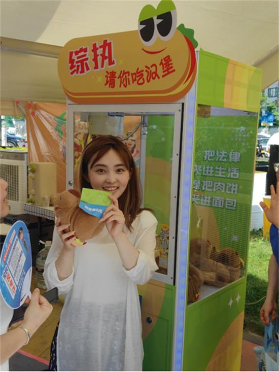 活動現(xiàn)場,該局東勝中隊“綜執(zhí)請你吃漢堡”主題攤位成為人氣焦點。執(zhí)法隊員以“攤主”身份精心設(shè)計“知識問答+潮玩互動+獎品兌換”的普法鏈條。參與者通過挑戰(zhàn)法律知識問答,贏取娃娃機游戲幣來抓取捆綁著漢堡兌換券的幸運玩偶,再在漢堡節(jié)上進行任意兌換。這種將嚴肅法律條文轉(zhuǎn)化為趣味挑戰(zhàn)的“游戲化”普法模式,顛覆了傳統(tǒng)的單向宣傳方式,通過互動性與獲得感的雙重驅(qū)動,讓法律知識在歡聲笑語中沁入人心。“沒想到普法還能這么玩!”市民項女士在成功兌換漢堡后笑言,“一邊學(xué)法一邊抓娃娃,最后還能享受美食,這知識‘漲’得也太值了!”