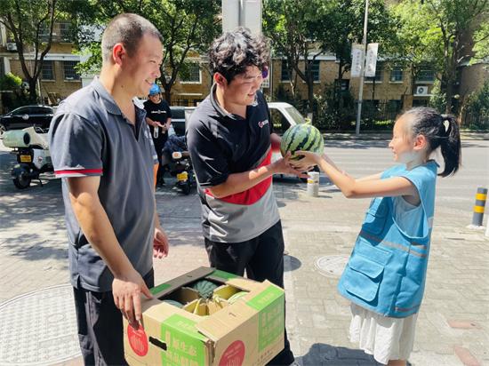 去年暑假,福城社區(qū)的十多名小學生曾眾籌563元,支起“小小網(wǎng)格員的愛心西瓜鋪”,為戶外工作者免費送西瓜。今年暑假剛至,在社區(qū)退役軍人的支持下,這個愛心項目升級成為清涼驛站。