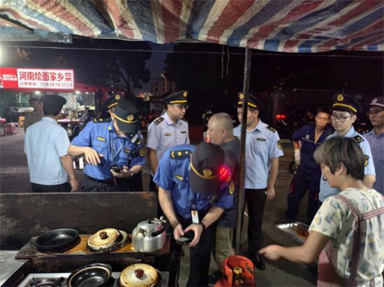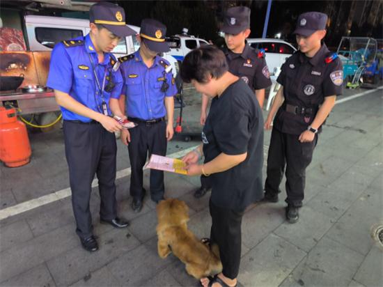 此次專項(xiàng)檢查重點(diǎn)覆蓋轄區(qū)內(nèi)的餐飲店鋪、夜宵城及周邊小區(qū),執(zhí)法人員圍繞商戶燃?xì)饧霸罹叩囊?guī)范使用、餐飲環(huán)境衛(wèi)生、食品安全、消防安全以及居民文明養(yǎng)犬等方面,進(jìn)行了全面細(xì)致的排查。在澥浦夜宵城檢查時(shí),發(fā)現(xiàn)部分商戶存在燃?xì)馄窟^期的現(xiàn)象。對此,執(zhí)法人員一方面指導(dǎo)商戶整改違規(guī)用氣行為,同步開展燃?xì)獍踩褂眯麄?;另一方面結(jié)合商戶經(jīng)營需求,第一時(shí)間聯(lián)系美氣多公司到場,協(xié)助商戶現(xiàn)場辦理開戶,并指導(dǎo)其通過官方電話、企業(yè)微信公眾號等正規(guī)渠道訂氣,從源頭上杜絕“黑氣”流通。這種集安全宣教、整改指導(dǎo)與現(xiàn)場服務(wù)于一體的方式,讓商戶切實(shí)感受到執(zhí)法的溫度,也提升了對服務(wù)式執(zhí)法的認(rèn)可。同時(shí),執(zhí)法人員對小區(qū)周邊進(jìn)行犬類集中整治,因夏季遛狗居民較多,執(zhí)法人員提醒養(yǎng)犬居民文明養(yǎng)犬,謹(jǐn)防犬類傷人事件發(fā)生。