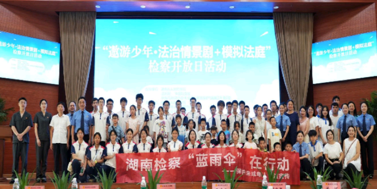 在湖南檢察“藍雨傘”普法團隊帶領下,岳陽市第十中學2322班的50名同學和家長代表,步入了一場沉浸式法治之旅。
