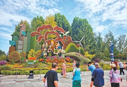 西單東北角“繁榮發(fā)展”主題花壇致敬各行各業(yè)勞動(dòng)者。記者 方非攝