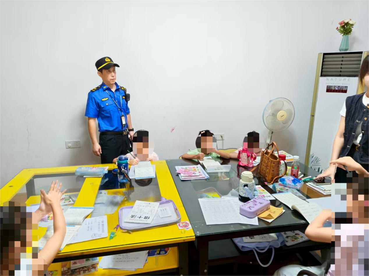 當(dāng)日,執(zhí)法人員在岳林街道力邦廣場(chǎng)檢查時(shí),發(fā)現(xiàn)原本登記主營(yíng)“中學(xué)生校外托管服務(wù)”的某機(jī)構(gòu)教室里,5名幼兒正跟著老師學(xué)習(xí)小學(xué)數(shù)學(xué)課程。經(jīng)查,該機(jī)構(gòu)不僅未取得辦學(xué)許可證,授課教師也無法提供教師資格證,屬于典型的“無證辦學(xué)+無資質(zhì)教學(xué)”雙重違規(guī)。執(zhí)法人員當(dāng)即向機(jī)構(gòu)負(fù)責(zé)人下發(fā)《停業(yè)整改通知書》,要求其立即停止所有違規(guī)培訓(xùn)活動(dòng)。