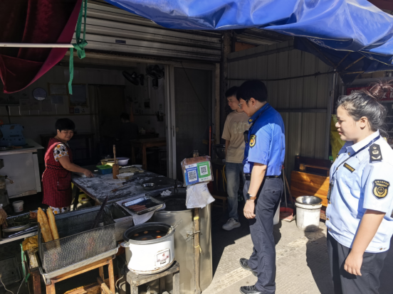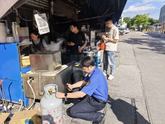 在整治過程中執(zhí)法人員對商鋪的燃?xì)馄康陌踩褂眠M(jìn)行詳細(xì)檢查,包括訂氣溯源,瓶口閥門,氣密安全等。執(zhí)法人員提醒商戶規(guī)范擺放物品,告知商鋪經(jīng)營線內(nèi)只能放置經(jīng)營物品,其他雜物不允許擺放。同時(shí),對商家燃?xì)?、灶具的安全使用,餐飲環(huán)境衛(wèi)生、食品安全等進(jìn)行了全方位的細(xì)致檢查。為學(xué)生營造一個(gè)健康、安全的飲食環(huán)境。