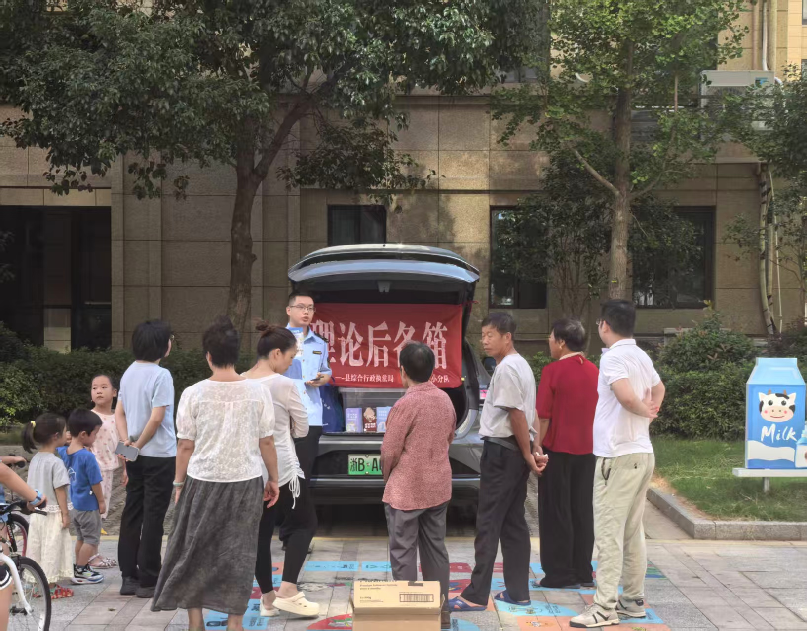 活動(dòng)現(xiàn)場(chǎng),汽車后備箱變身普法“超市”,居民可根據(jù)小區(qū)實(shí)際和關(guān)注熱點(diǎn),選擇十大常見違法事項(xiàng)、文明養(yǎng)犬、規(guī)范涉企檢查等主題,與現(xiàn)場(chǎng)執(zhí)法人員展開深入互動(dòng)。這種“點(diǎn)單式”普法變“單向宣講”變成“雙向交流”,不僅讓居民們更加深入地了解了相關(guān)法律法規(guī),也為執(zhí)法部門提供了寶貴的反饋。宣講結(jié)束后,章學(xué)昂的筆記本上記錄下了擴(kuò)展普法對(duì)象、開展情景模擬等3條建議,這些將成為下階段普法優(yōu)化的重點(diǎn)。
