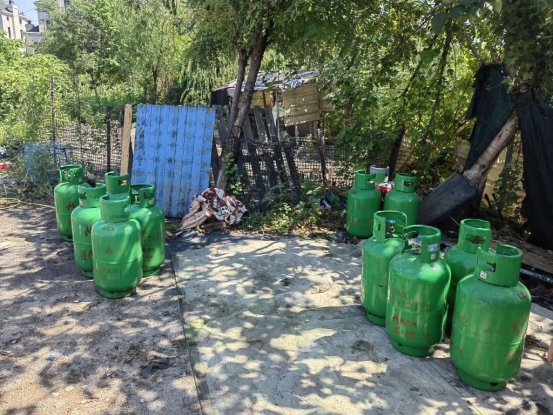 圖為查獲現(xiàn)場露天放置的空燃氣瓶