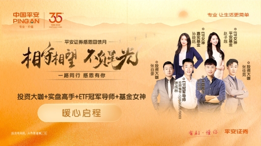 據(jù)悉,在中國(guó)平安成立35周年之際,為了以專業(yè)、有溫度的金融產(chǎn)品及服務(wù)持續(xù)感恩回饋2200萬(wàn)客戶,平安證券啟動(dòng)"感恩回饋月"活動(dòng),在為期一個(gè)月的活動(dòng)期間,平安證券APP推出"Pick平安好投顧""實(shí)盤英雄傳""ETF粉絲回饋""最佳功能評(píng)選"等主題活動(dòng),并落地年度盛典直播活動(dòng),邀請(qǐng)業(yè)界大咖及資深用戶深入交流,暢聊投資理念,探尋正確的投資之道,為用戶帶來(lái)"省心、省時(shí)、又省錢"的金融服務(wù)體驗(yàn)。