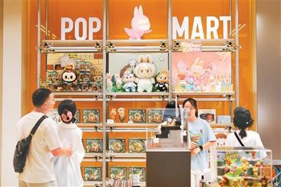 在重慶市渝中區(qū)來福士商場的泡泡瑪特門店,市民選購相關(guān)產(chǎn)品。?孫凱芳攝(人民圖片)