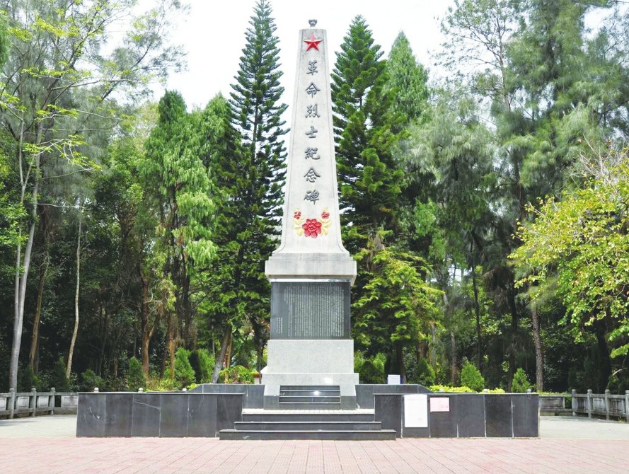 李卡烈士紀(jì)念碑坐落于他進(jìn)行武裝斗爭(zhēng)的主要活動(dòng)地——廣東韶關(guān)翁源。紀(jì)念碑高約10米,共分3層。碑身使用磚體結(jié)構(gòu)水泥筑就,正面銘刻著“革命烈士紀(jì)念碑”7個(gè)黑體大字,字體上方有紅星照耀,下方有鮮花環(huán)繞。碑身以下又分兩層,底下一層為碑座,同是磚體結(jié)構(gòu)水泥材質(zhì),中間一層則是銘刻著碑文的黑體瓷磚。紀(jì)念碑莊重大氣,望之肅然起敬。與一般紀(jì)念碑不同的是,碑的正面與背面都刻有碑文,正面碑文講述了翁源革命的歷史概況,尤為獨(dú)特的是背面碑文,主要文字竟然是一篇遺書。背面碑文全文如下: