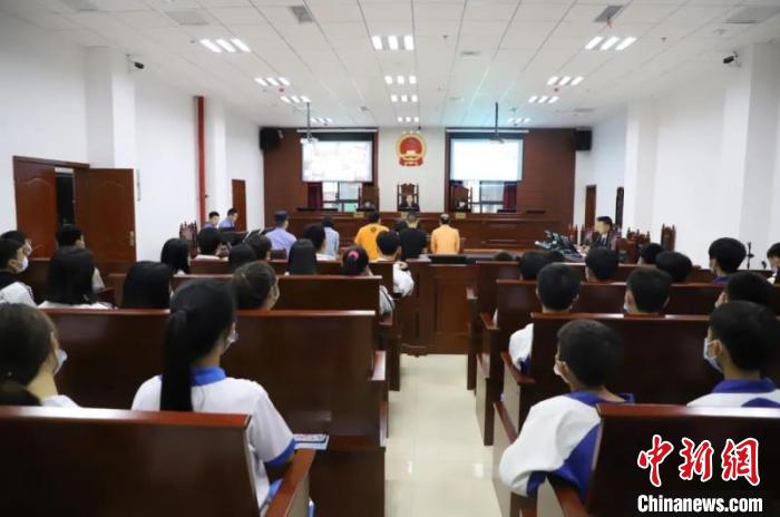 長(zhǎng)順縣法院組織百余名師生現(xiàn)場(chǎng)觀摩一起電信“詐騙案件”?!≠F州高院供圖