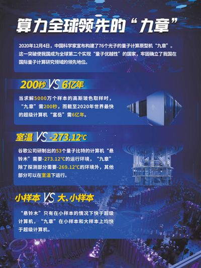 在一個特定賽道上,200秒的“量子算力”,相當于目前“最強超算”6億年的計算能力。2020年,《科學》雜志公布的中國“九章”計算機重大突破,讓世界矚目。這臺由中國科學技術(shù)大學潘建偉、陸朝陽等學者研制的76個光子的量子計算原型機“九章”,推動全球量子計算的前沿研究達到一個新高度,在谷歌“懸鈴木”計算機之后,再次成功實現(xiàn)“量子優(yōu)越性”的里程碑式突破。