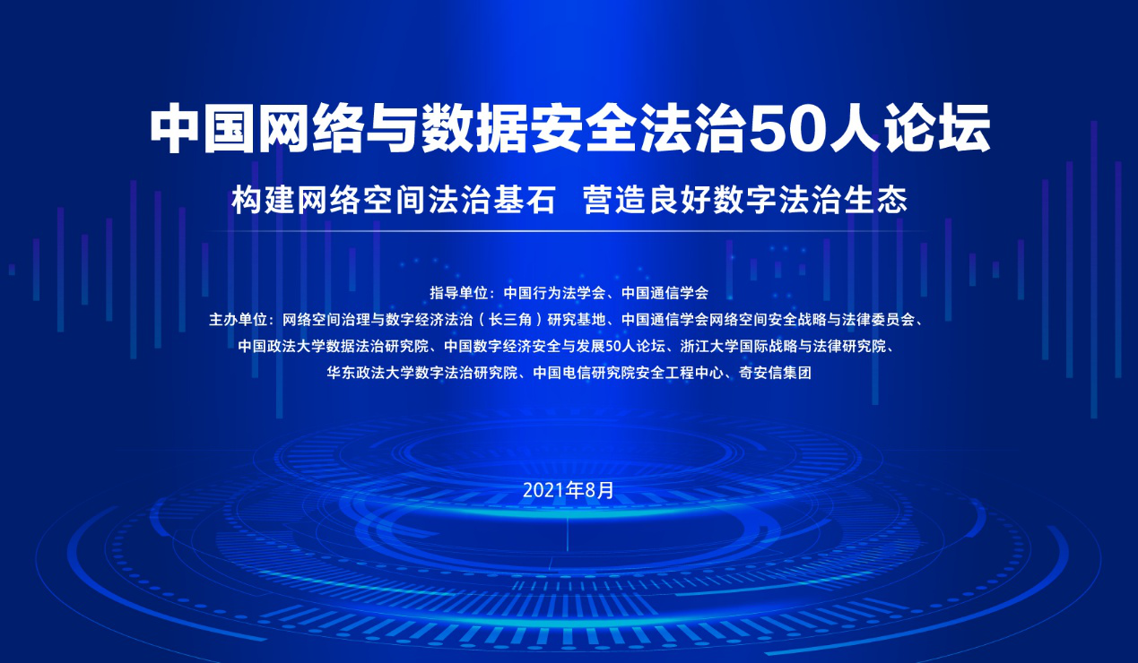 本屆論壇的指導(dǎo)單位是中國(guó)行為法學(xué)會(huì)和中國(guó)通信學(xué)會(huì),由網(wǎng)絡(luò)空間治理與數(shù)字經(jīng)濟(jì)法治(長(zhǎng)三角)研究基地、中國(guó)通信學(xué)會(huì)網(wǎng)絡(luò)空間安全戰(zhàn)略與法律委員會(huì)、中國(guó)政法大學(xué)數(shù)據(jù)法治研究院、中國(guó)數(shù)字經(jīng)濟(jì)安全與發(fā)展50人論壇、華東政法大學(xué)數(shù)字法治研究院、浙江大學(xué)國(guó)際戰(zhàn)略與法律研究院、中國(guó)電信研究院安全工程中心、奇安信集團(tuán)和北京網(wǎng)絡(luò)安全大會(huì)組委會(huì)聯(lián)合主辦。