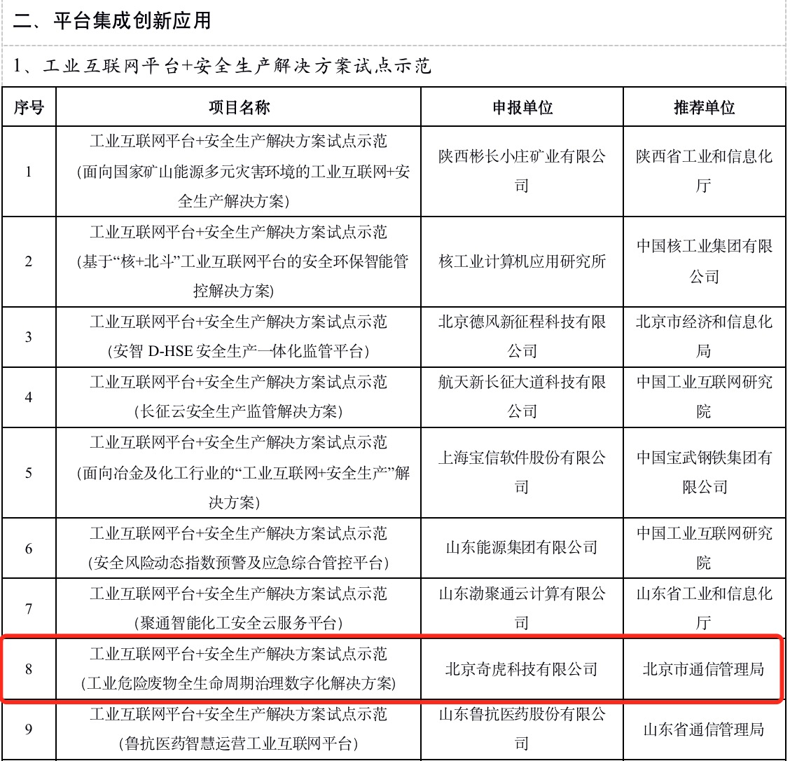 近日,工信部公示2021年工業(yè)互聯(lián)網(wǎng)試點示范項目名單,三六零(下稱“360”)“工業(yè)危險廢物全生命周期治理數(shù)字化解決方案”成功入選,成為工業(yè)互聯(lián)網(wǎng)平臺+安全生產(chǎn)解決方案試點示范項目。