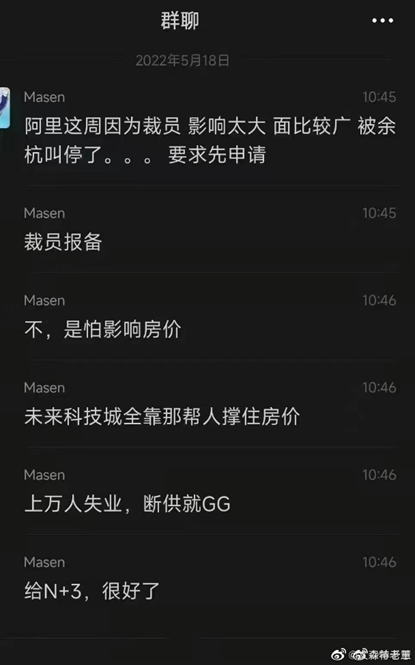 這般異常也引發(fā)了外界諸多猜測(cè)。5月18日,一則微信聊天記錄截圖在微博流傳,據(jù)截圖顯示,有網(wǎng)友稱“阿里這周因?yàn)椴脝T,影響太大,面比較廣,被余杭叫停了,要求先申請(qǐng),裁員報(bào)備?!?月19日,另一網(wǎng)友出來(lái)“辟謠”,其稱“阿里裁員被余杭叫停是假消息,杭州炒房團(tuán)放的?!?/p>