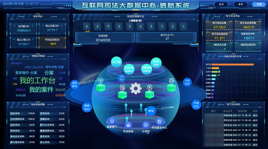 為深入貫徹浙江省委數(shù)字化改革決策部署,落實浙江高院“全域數(shù)字法院”改革任務,杭州互聯(lián)網(wǎng)法院全面打造互聯(lián)網(wǎng)司法數(shù)智大腦,積極拓寬數(shù)字集成應用場景,驅(qū)動法院建設智慧化躍遷,通過多維度的交互展示、網(wǎng)絡空間治理專題分析報告、未來態(tài)勢感知和預警、開放大數(shù)據(jù)服務等多種方式的輸出能力為涉網(wǎng)司法智治及互聯(lián)網(wǎng)空間治理提供有力的智能支撐。