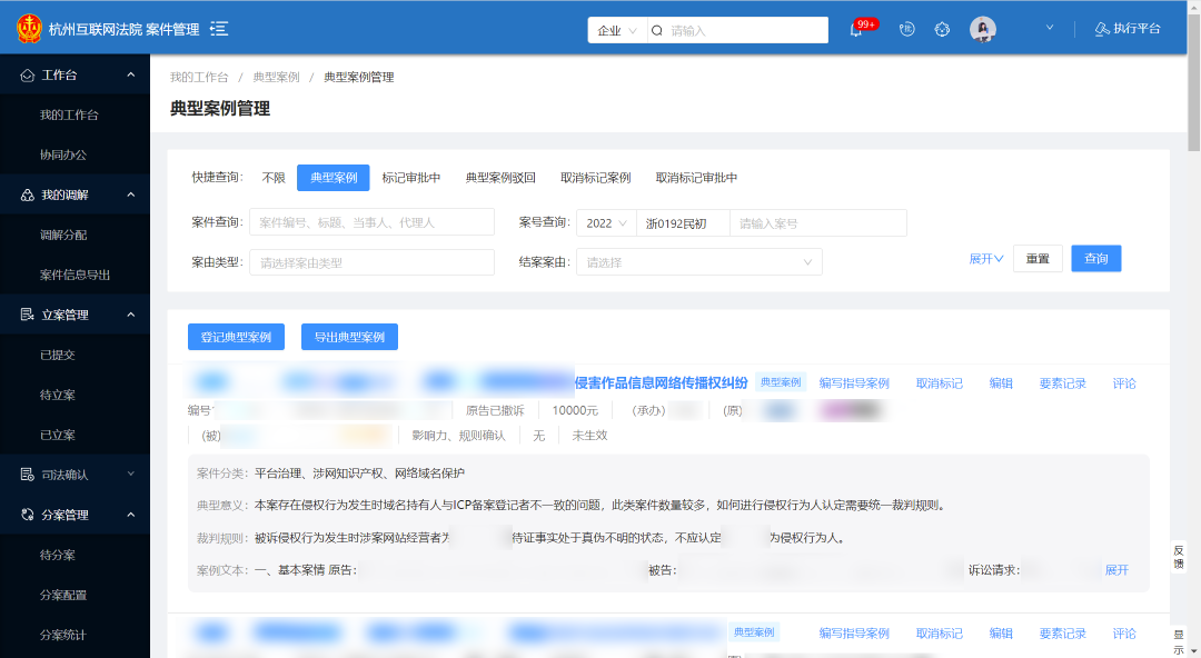 系統(tǒng)通過對互聯(lián)網(wǎng)糾紛形勢、樣態(tài)和原因的分析,判斷互聯(lián)網(wǎng)糾紛的風險點、數(shù)字經(jīng)濟發(fā)展的機制障礙以及政府管理存在的漏洞,為政府、互聯(lián)網(wǎng)企業(yè)等主體提供有益的決策參考。如針對以銀行為貸方的小額借貸糾紛在線起訴難等問題,在約定電子送達、庭審方式、數(shù)據(jù)對接等方面提出切實可行建議。針對影響面大的互聯(lián)網(wǎng)群體性糾紛,提升信息靈敏度,及時向有關部門發(fā)出預警。利用在線多元糾紛化解機制,強化平臺協(xié)同化解糾紛的主體責任,推動網(wǎng)絡空間共同治理。