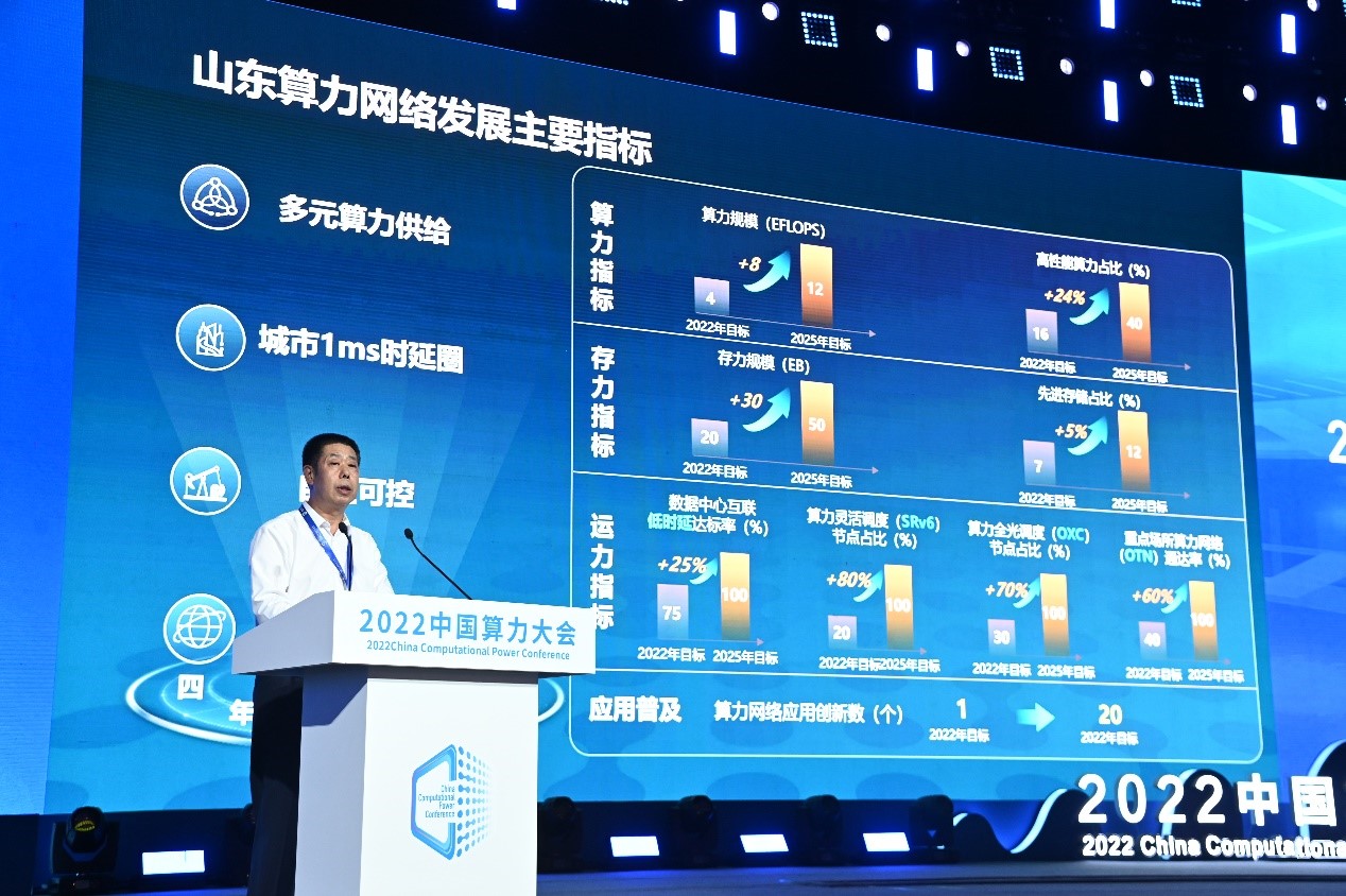 據(jù)山東省通信管理局張洪溢局長介紹,《山東一體化算力網(wǎng)絡(luò)建設(shè)行動方案(2022-2025年)》明確了4項具體目標:算力供給均衡合理、存力保障安全可靠、運力網(wǎng)絡(luò)優(yōu)質(zhì)互聯(lián)、算力網(wǎng)絡(luò)應(yīng)用創(chuàng)新。一是穩(wěn)步提升全省算力規(guī)模,2025年全省數(shù)據(jù)中心總算力超過12EFLOPS,高性能算力占比達到40%,國產(chǎn)化算力達到90%;二是系統(tǒng)構(gòu)建存力基礎(chǔ)設(shè)施,2025年存力規(guī)模達到50EB,先進存儲占比12%;三是持續(xù)夯實運力聯(lián)接底座,到2025年,全面構(gòu)建省會經(jīng)濟圈、膠東經(jīng)濟圈、魯南經(jīng)濟圈3毫秒時延圈,16地市1毫秒時延圈,全省數(shù)據(jù)中心、核心傳輸站點實現(xiàn)SRv6核心路由器、全光交換(OXC)傳輸設(shè)備全覆蓋,商務(wù)樓宇和產(chǎn)業(yè)園區(qū)實現(xiàn)OTN光接入終端全覆蓋;四是深化推動算力網(wǎng)絡(luò)應(yīng)用創(chuàng)新,結(jié)合省內(nèi)產(chǎn)業(yè)特點,到2025年打造20個可規(guī)模復制的算力網(wǎng)絡(luò)標桿應(yīng)用。