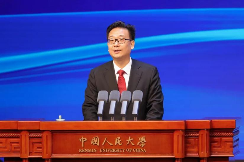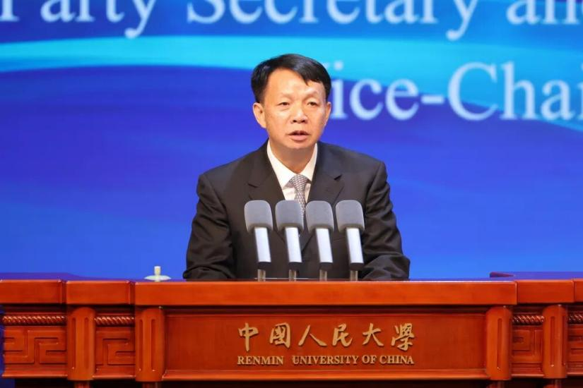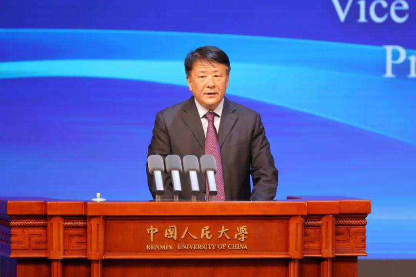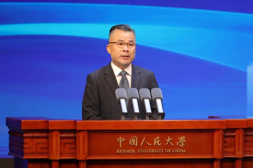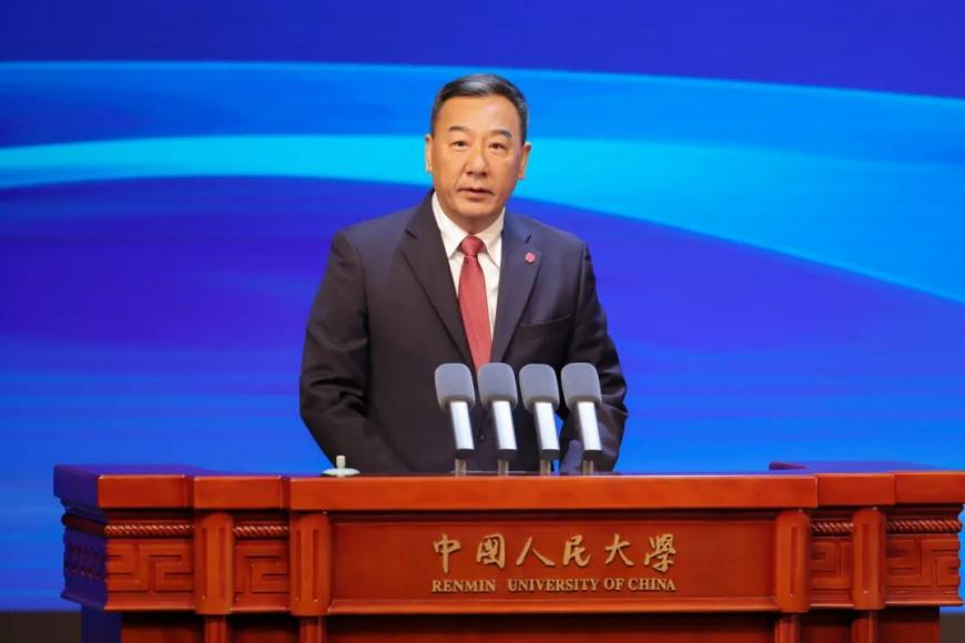 圖為中國人民大學黨委書記張東剛在開幕式致辭。