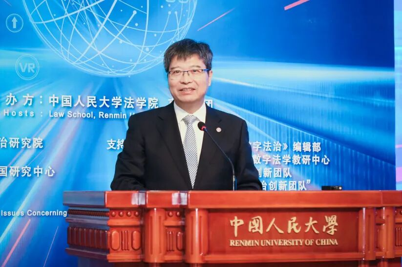 圖為中國人民大學校長林尚立在平行主題論壇——第六屆“未來法治與數(shù)字法學”國際論壇中致辭。