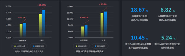 在學(xué)歷方面,雄安新區(qū)流動(dòng)人口的高學(xué)歷占比高于常住人口。與此同時(shí),常住人口的高學(xué)歷比例增加也較為明顯,過去一年雄安常住人口本科和大專比例同比分別增長了10.45%和5.24%。