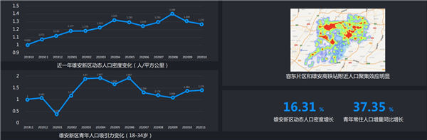 通過《報(bào)告》可以看出,雄安新區(qū)對(duì)青年人口的吸引力在持續(xù)提升。2020 年11月,雄安青年常住人口較2019 年同期增長了37.35%。越來越多的青年人來到雄安,為雄安注入了活力。