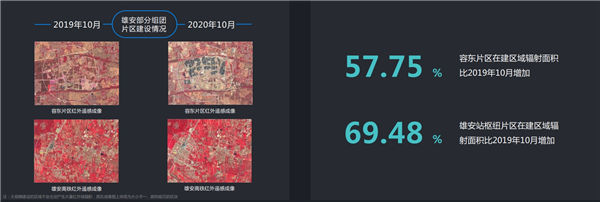 容東、昝崗、雄東地表面貌發(fā)生了顯著變化,雄安在建區(qū)域輻射面積一年間增加了89.52%
