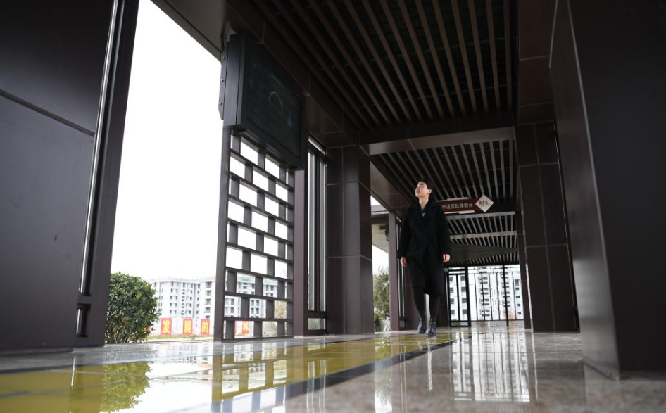 劇村站工作人員在壓力發(fā)電步道體驗區(qū)進行展示。(新華社記者朱旭東 攝)
