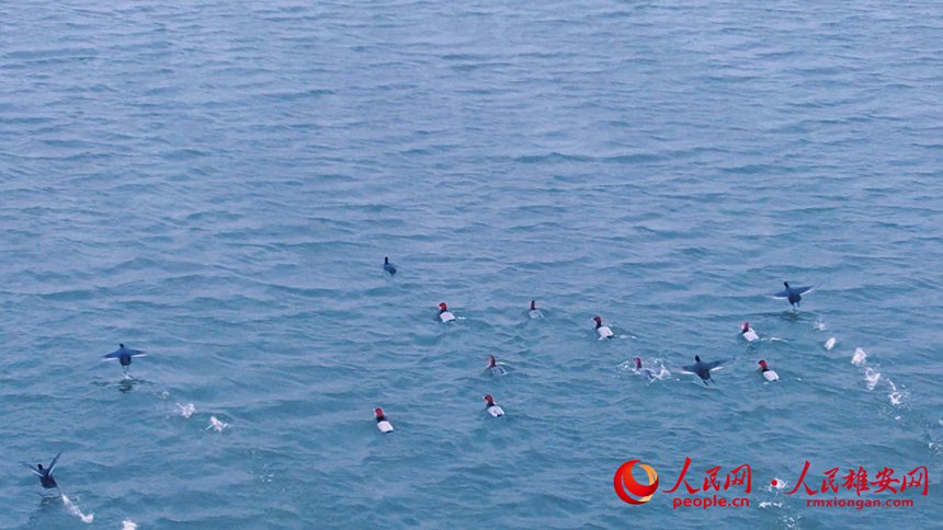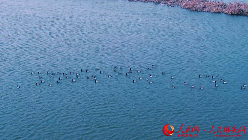 人民網(wǎng)雄安3月24日電 “春江水暖鴨先知?!币坏酱禾?,大批候鳥陸續(xù)抵達(dá)白洋淀,開始筑巢產(chǎn)卵、孵化育雛,11月份再遷徙到南方避寒越冬。日前,在白洋淀水域拍攝到遷徙歸來的國家一級保護(hù)動物青頭潛鴨,鳳頭鸊鷉和大種群的國家“三有”保護(hù)動物紅頭潛鴨、白骨頂雞,它們在淀中暢游、嬉戲、追逐、覓食,萌態(tài)十足。