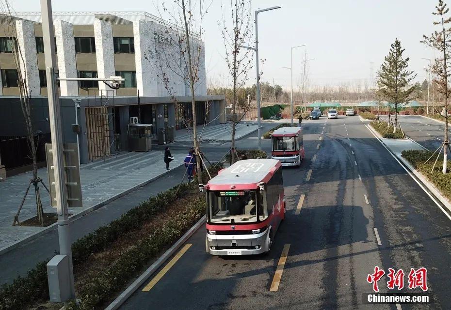 2月22日,智能網(wǎng)聯(lián)巴士901線測(cè)試車(chē)輛與普通城市公交車(chē)駛出公交站臺(tái)。雄安新區(qū)的智能網(wǎng)聯(lián)巴士近期正在進(jìn)行投入運(yùn)營(yíng)前的道路測(cè)試,該巴士配備了超高感度攝像頭、超聲波雷達(dá)、激光雷達(dá)、毫米波雷達(dá)等感知設(shè)備,組成了車(chē)輛的“眼睛”。