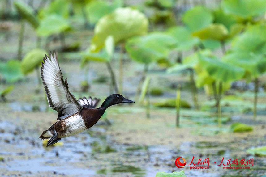 人民網(wǎng)雄安6月25日電 (劉師豪、宋燁文)近日,來自雄安新區(qū)安新縣的愛鳥護鳥志愿者、生態(tài)攝影師張學(xué)農(nóng)在白洋淀某處水域發(fā)現(xiàn)了約30只國家一級保護野生動物青頭潛鴨的身影,并且拍到了青頭潛鴨雌鳥與雛鳥活動的影像。