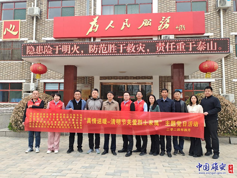 中國(guó)雄安官網(wǎng)4月3日電 青山埋忠骨,不忘英烈魂。為緬懷革命先烈,切實(shí)營(yíng)造崇尚英烈、學(xué)習(xí)英烈、關(guān)愛(ài)烈屬濃厚氛圍,進(jìn)一步增強(qiáng)烈屬的榮譽(yù)感、幸福感,4月1日至2日,雄安新區(qū)公共服務(wù)局聯(lián)合河北雄安雄鼎人力資源管理有限公司、禾躍科技(河北雄安)有限公司、河北雄安新區(qū)關(guān)愛(ài)退役軍人基金會(huì),在雄安新區(qū)范圍內(nèi)共同開(kāi)展“真情送暖-清明節(jié)關(guān)愛(ài)烈士家屬”活動(dòng)。