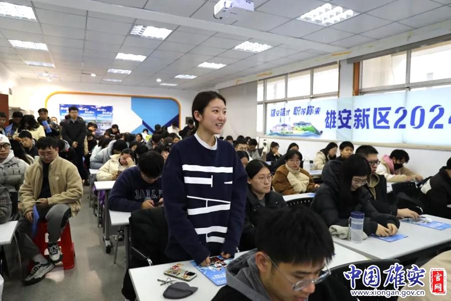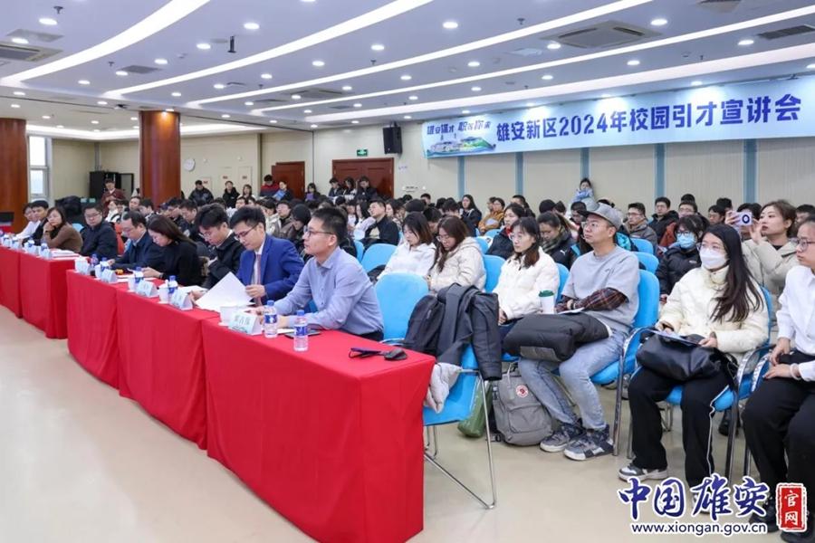 “雄安雄才 職等你來(lái)”雄安新區(qū)2024年校園引才宣講活動(dòng)現(xiàn)場(chǎng)。中國(guó)雄安官網(wǎng)發(fā)