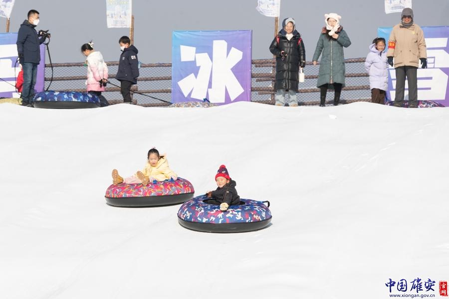 游客在辛瑪冰雪王國滑道項(xiàng)目游玩。中國雄安官網(wǎng)李鑫 攝