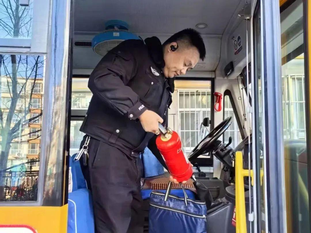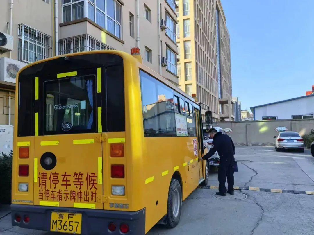 開(kāi)學(xué)前,開(kāi)展校車安全檢查。重點(diǎn)檢查車輛制動(dòng)、燈光、輪胎等安全性能,確保車輛行駛安全,對(duì)校車許可、駕駛證、交強(qiáng)險(xiǎn)、行駛證進(jìn)行仔細(xì)檢查,并查看滅火器、安全錘、急救箱等安全設(shè)備配備情況,杜絕“病車”上路。