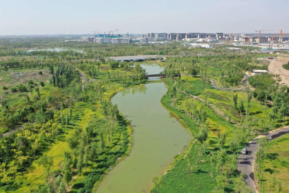河北雄安新區(qū)啟動(dòng)區(qū)中央綠谷及東部溪谷生態(tài)廊道一角(2023年7月19日攝)。新華社記者 朱旭東 攝