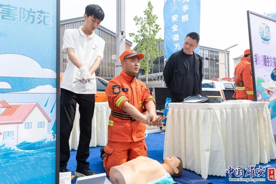 新區(qū)安委會有關(guān)成員單位,各片區(qū)管理委員會、三縣應(yīng)急管理局、新區(qū)應(yīng)急管理協(xié)會、新區(qū)森林消防隊、容城縣消防救援大隊、容東片區(qū)綜合執(zhí)法隊、雄安集團智慧能源公司代表,以及容東、容西片區(qū)社區(qū)及家庭代表等共150余人參加活動。